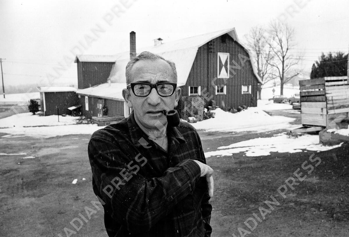 ** FILE ** Max Yasgur poses at his farm near Bethel, N.Y. in this March 23, 1970 file photo. The famous Woodstock homestead is on the market for $8 million. Up for sale is the 2,000-square-foot house that belonged to dairy farmer Yasgur, along with a larger farmhouse, a barn and 103 bucolic acres about 80 miles north of New York City. (AP Photo)