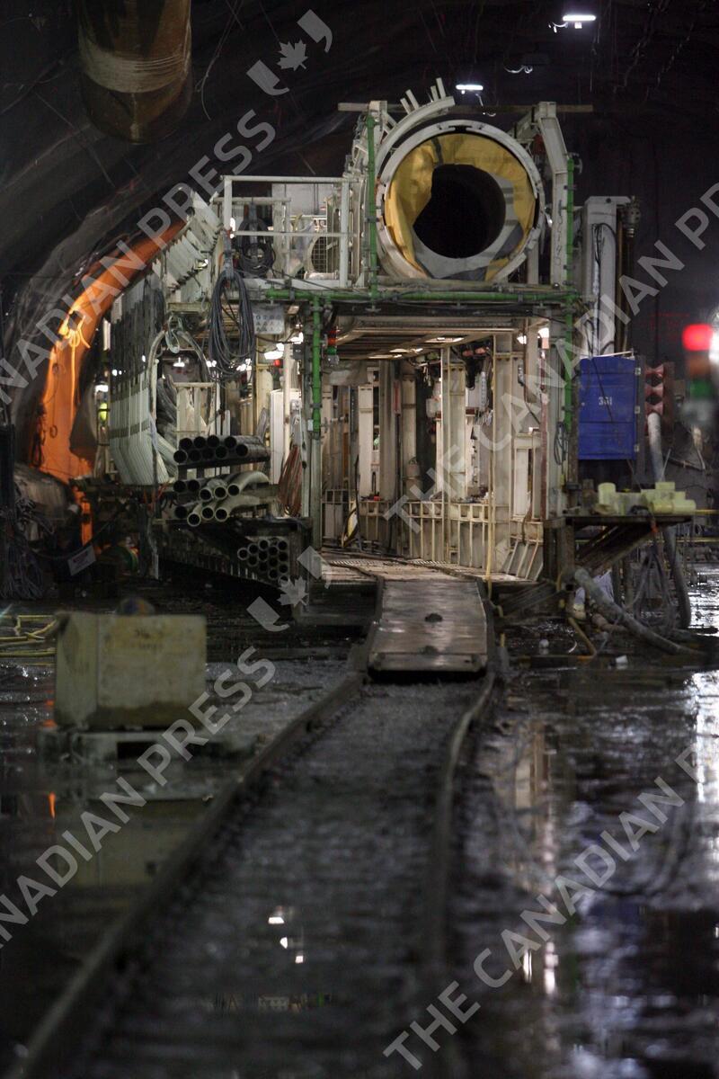 The tunnel-boring machine that carved out the massive cavern for the new 34th Street Station that will be part of the Number 7 subway extension at the Hudson Yards in Manhattan is photographed, Wednesday, Feb. 3, 2010 in New York. The $2.1 billion project, funded by the city and managed by the MTA, is the first subway expansion in decades. In December, the second of two tunnel-boring machines reached the southern wall of the 34th Street Station cavern after mining a combined 2,900 feet from their starting point at 26th Street under 11th Avenue. The machines are now drilling tunnels north of 34th Street towards 42nd Street. (AP Photo/Mary Altaffer)