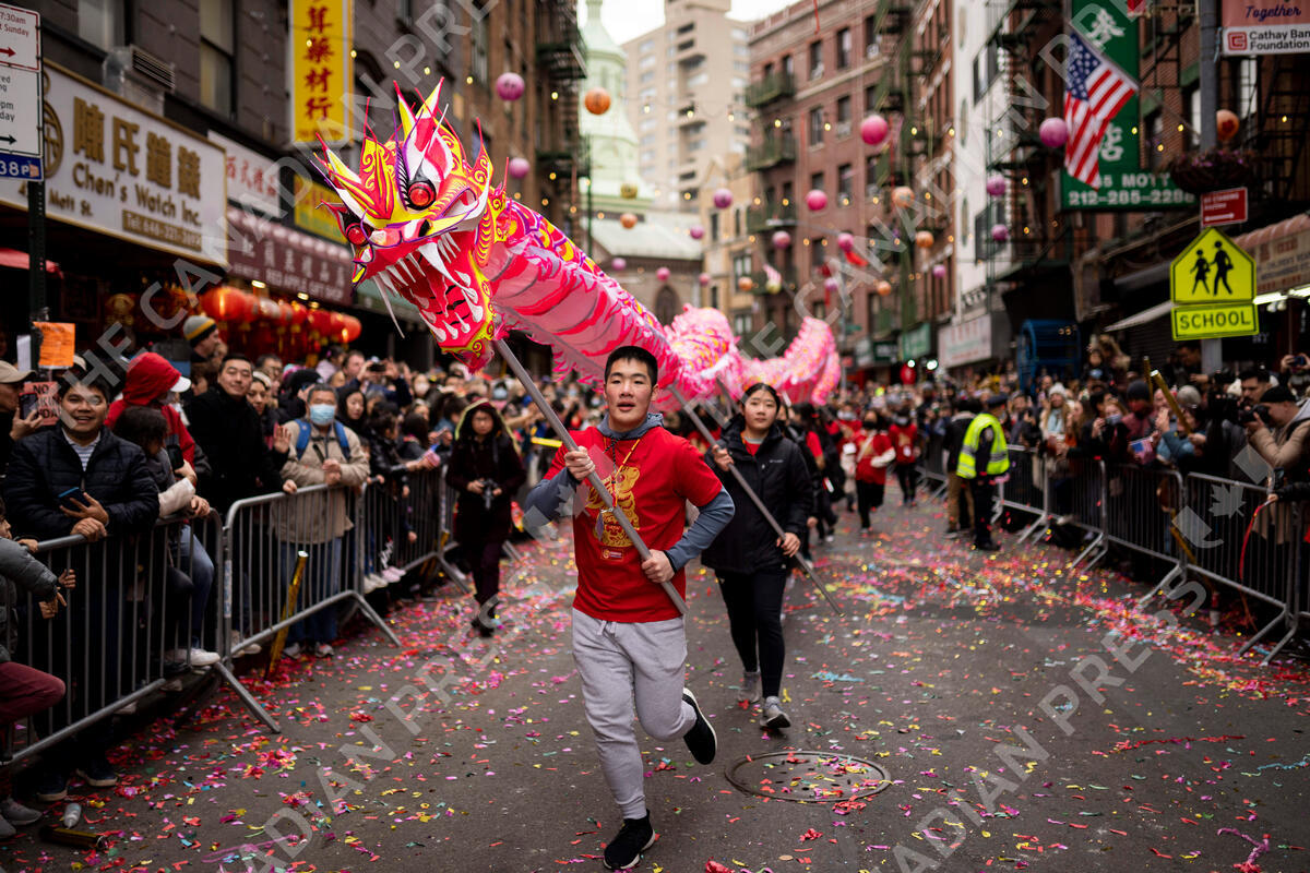 Revelers celebrate Lunar New Year in Manhattan's Chinatown, Sunday, Feb. 12, 2023, in New York. (AP Photo/John Minchillo)