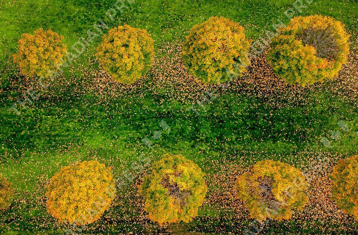 Trees stand in a small park in Frankfurt, Germany, Tuesday, Nov. 8, 2022. (AP Photo/Michael Probst)
