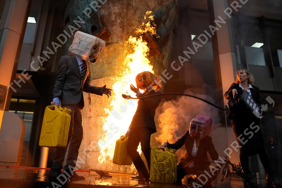 Ocean Rebellion demonstrators protest outside the International Maritime Organisation against the use of fossil fuels in the shipping industry, in London, Monday, Nov. 21, 2022. (AP Photo/Alastair Grant)