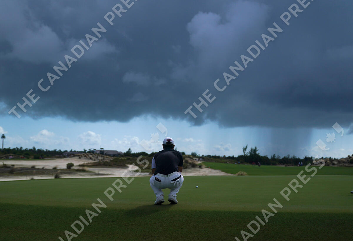 Tom Kim, of South Korea, lines up a putt on the third green during the first round of the Hero World Challenge PGA Tour at the Albany Golf Club, in New Providence, Bahamas, Thursday, Dec. 1, 2022. (AP Photo/Fernando Llano)