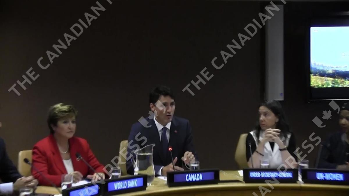 Prime Minister Justin Trudeau delivers the opening remarks for a Girls' Education Leaders roundtable at the United Nations in New York City, Monday Sept. 24, 2018. SOUNDBITE: Justin Trudeau, Prime Minister PLACELINE: New York City, U.S. CREDIT The Canadian Press LANGUAGE: English, French NOTE: Audio is best quality available