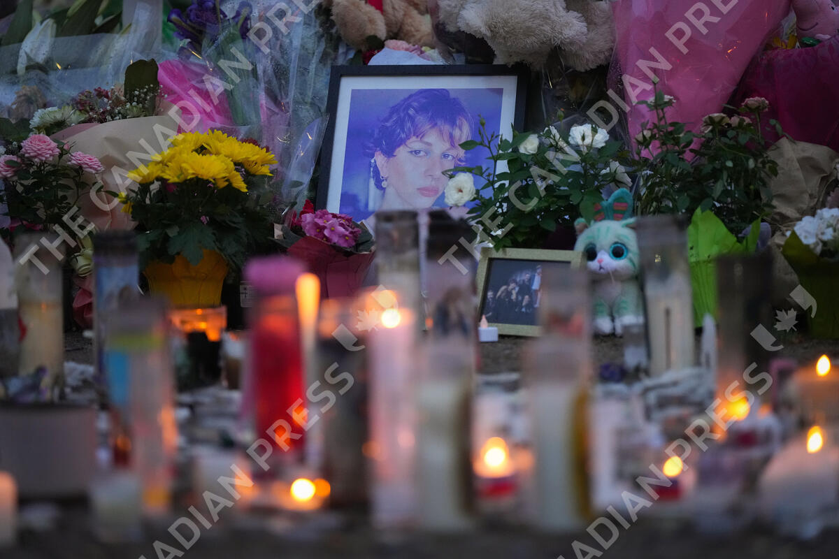 A photograph of Kira Salim is seen surrounded by flowers and candles during a vigil on a provincial day of mourning for the victims of the vehicle-ramming attack at the Filipino community's Lapu Lapu Day festival last week, in Vancouver, on Friday, May 2, 2025. THE CANADIAN PRESS/Darryl Dyck