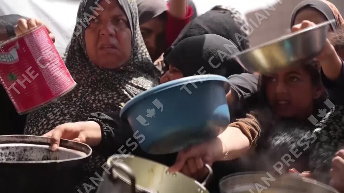 Clutching pots and buckets, desperate families pushed and shoved at food distribution sites to reach steaming vats of soup in Khan Younis, in southern Gaza and Beit Lahiya, in northern Gaza.