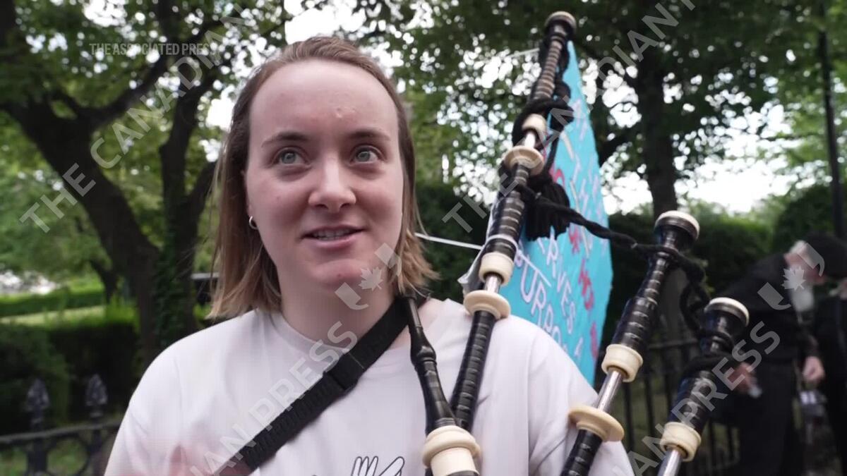 CP174803099 | Trump plays golf in Scotland while protesters take to the streets and decry his visit
