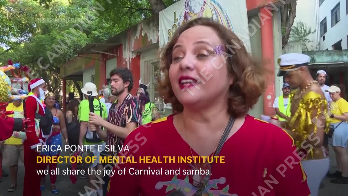 Patients from a mental health institute take part in a Rio de Janeiro Carnival street party