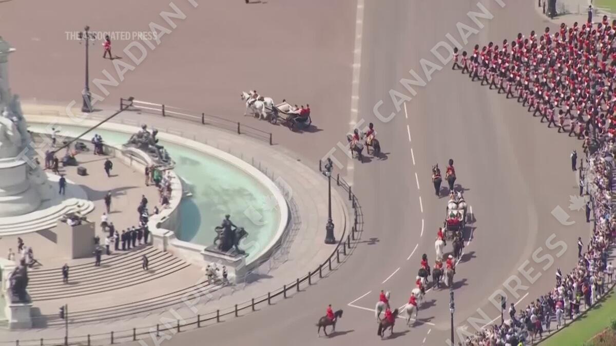 King Charles III, Queen Camilla and senior royals waved to crowds in central London Saturday for the monarch's annual birthday parade, known as Trooping the Colour.