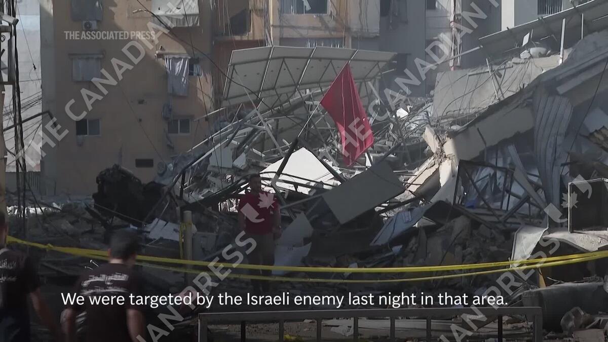 The Israeli military struck several sites in Beirut's southern suburbs that it said held underground facilities used by Hezbollah for drone production on Thursday, on the eve of Eid al-Adha. Several neighborhoods in Dahiyeh were targeted. There was no immediate word on casualties. (AP video shot by Fadi Tawil , Mahamad Anouti )