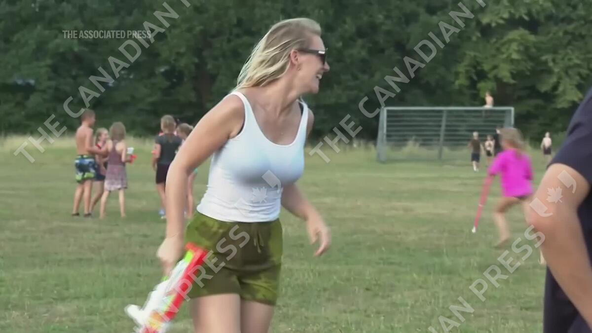 Dutch town of Soest cool downs with water gun fight amid European heatwave