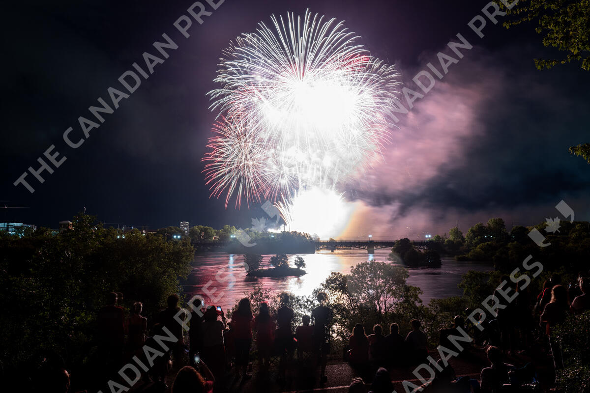 Fireworks explode over the Ottawa River during Canada Day festivities in Ottawa, on Tuesday, July 1, 2025. THE CANADIAN PRESS/Spencer Colby