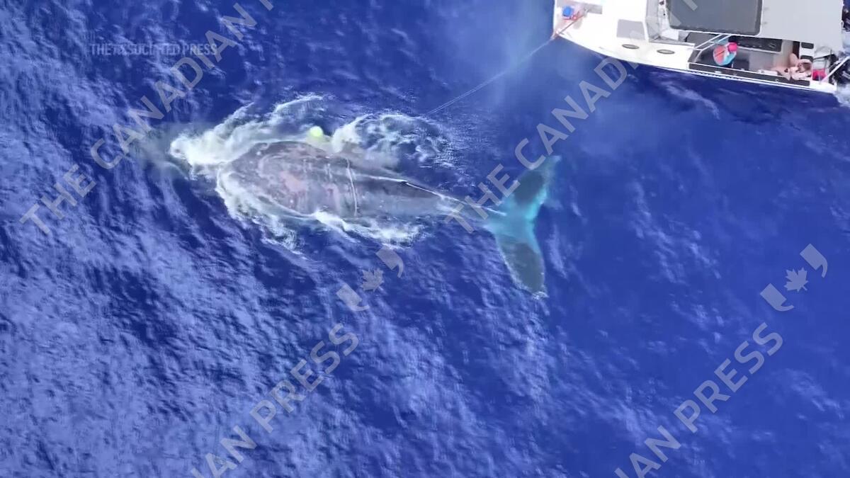 Video shows how a humpback in Hawaii was disentangled from fishing gear