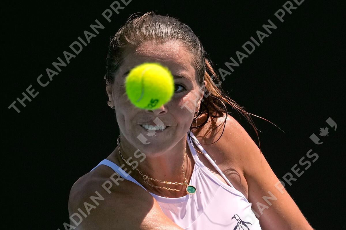 Jodie Burrage of Britain plays a backhand return to Leolia Jeanjean of France during their first round match at the Australian Open tennis championship in Melbourne, Australia, Monday, Jan. 13, 2025. (AP Photo/Manish Swarup)