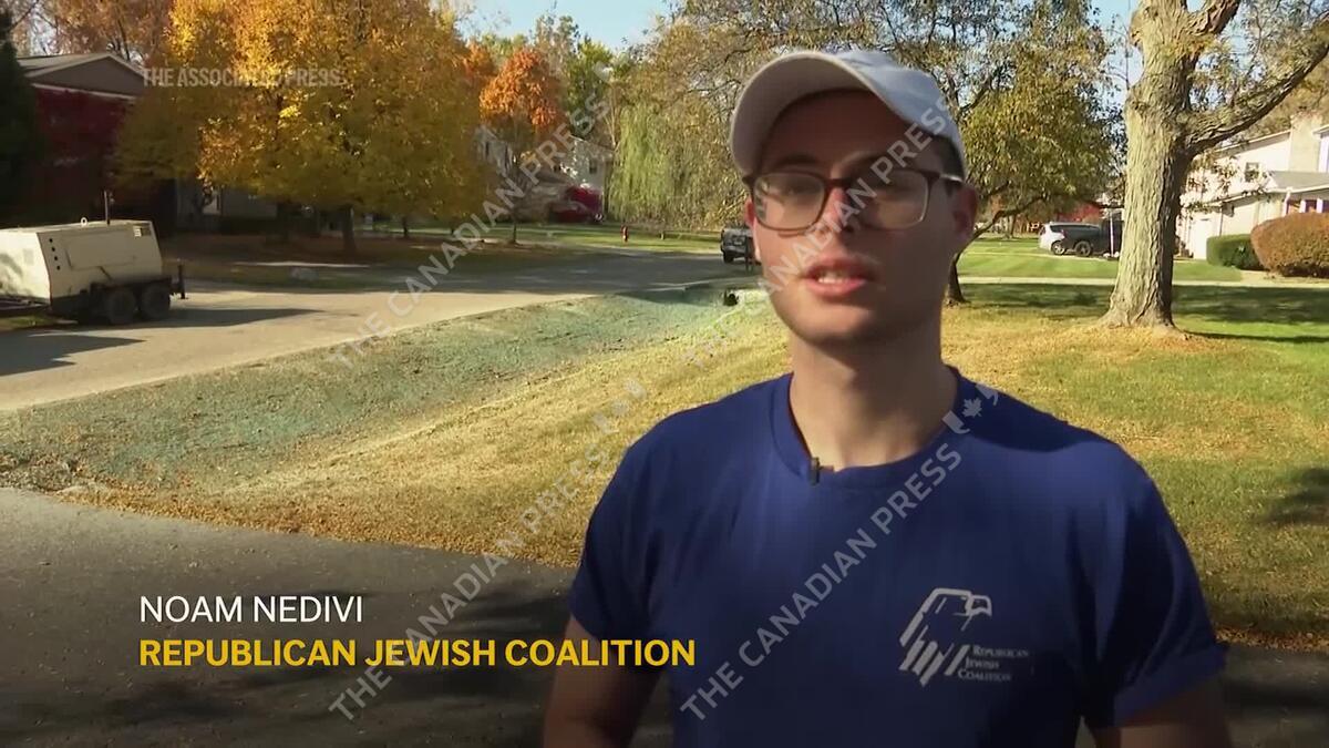 A Republican group is focusing a door-knocking effort on Jewish voters in five battleground states to boost Donald Trump over Kamala Harris in the Nov. 5 election (AP video: Mike Householder)