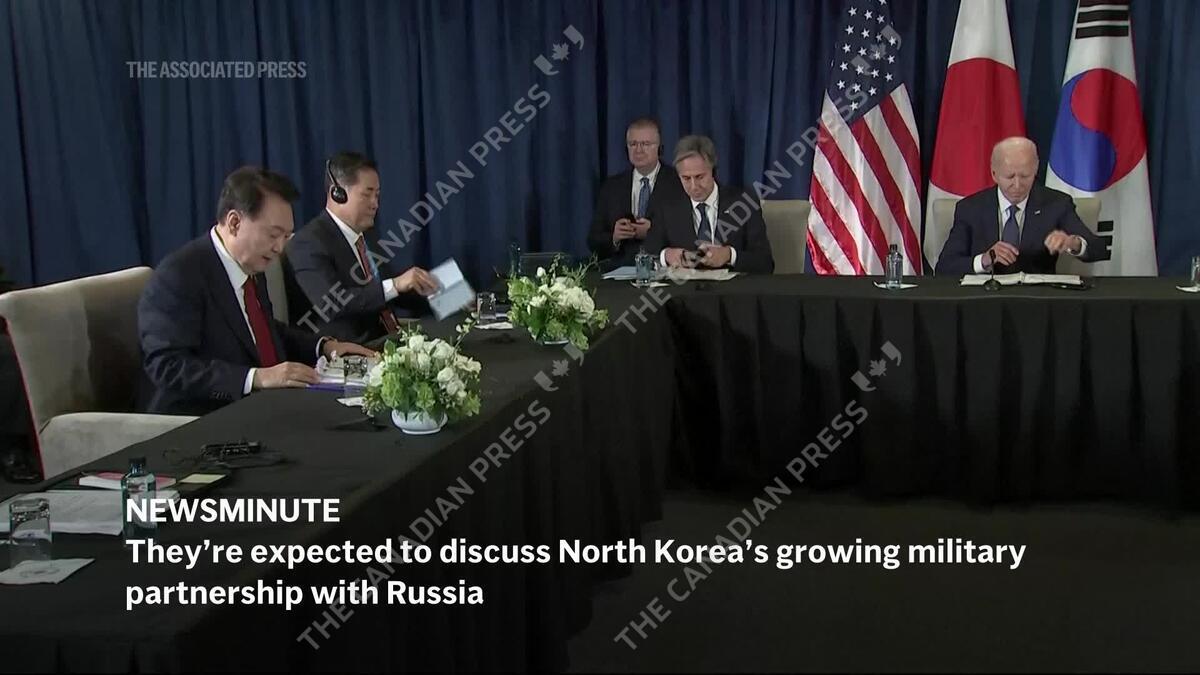 Here's the latest for Friday, Nov. 15th: Venezuelan man on trial for murder of Georgia nursing student; Biden meets with South Korean and Japanese leaders; Moment of Beirut airstrike caught on camera; South Africa seeks to remove illegal gold miners.