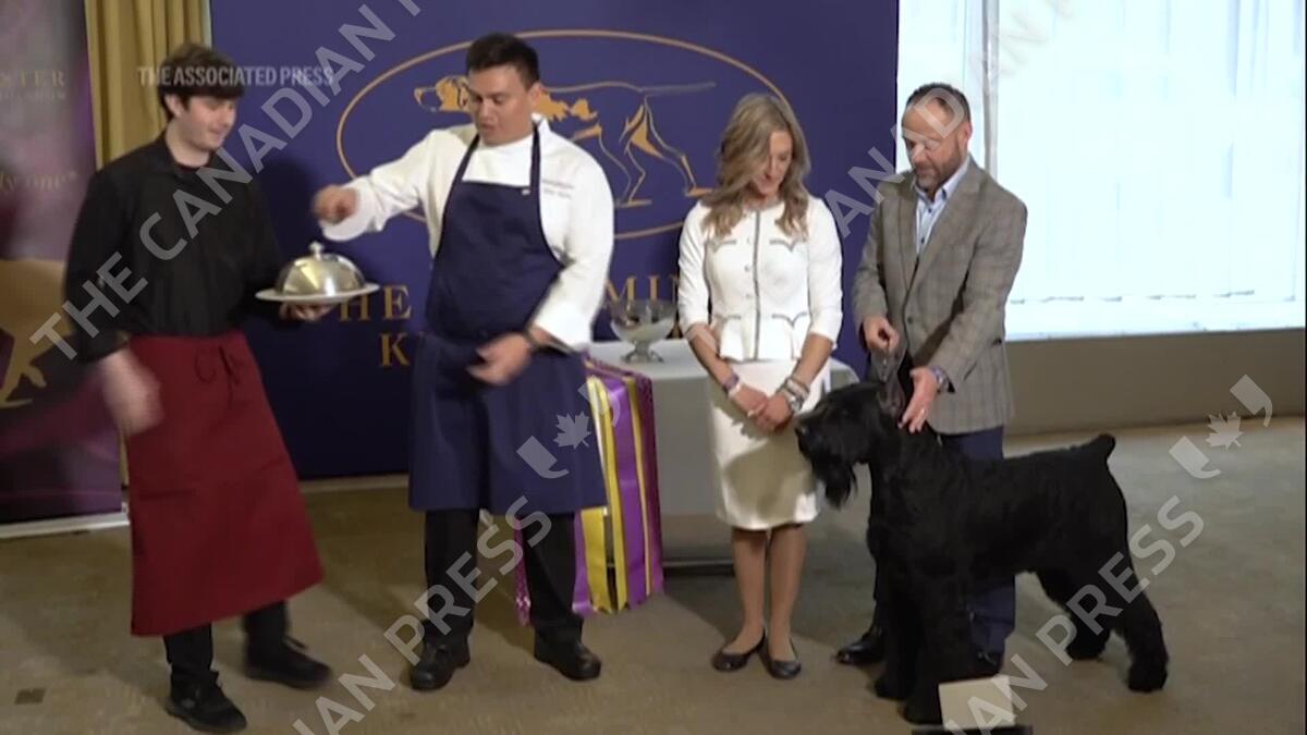 Monty, a giant schnauzer, won the top prize at the Westminster dog show. He beat six other finalists Tuesday night at Madison Square Garden. The award was the most prestigious in the U.S. dog show world. He was celebrated with photo opportunities at the Empire State Building and a steak dinner at an uptown restaurant.