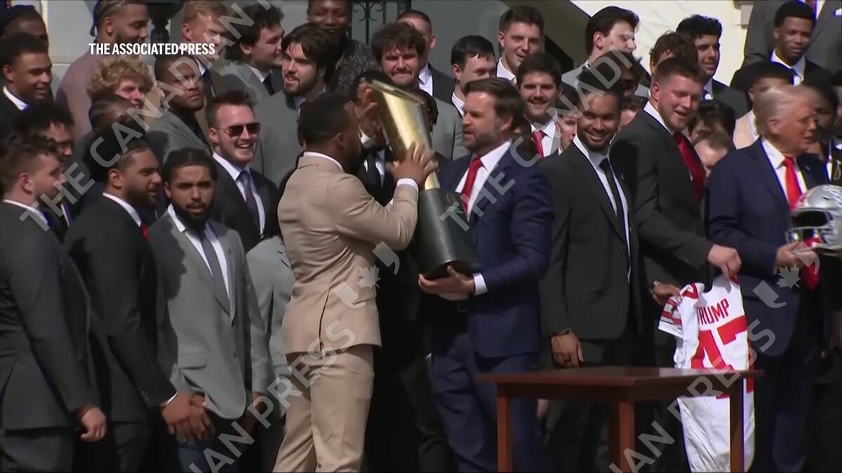 Vance fumbles college football championship trophy as White House celebrates Ohio State