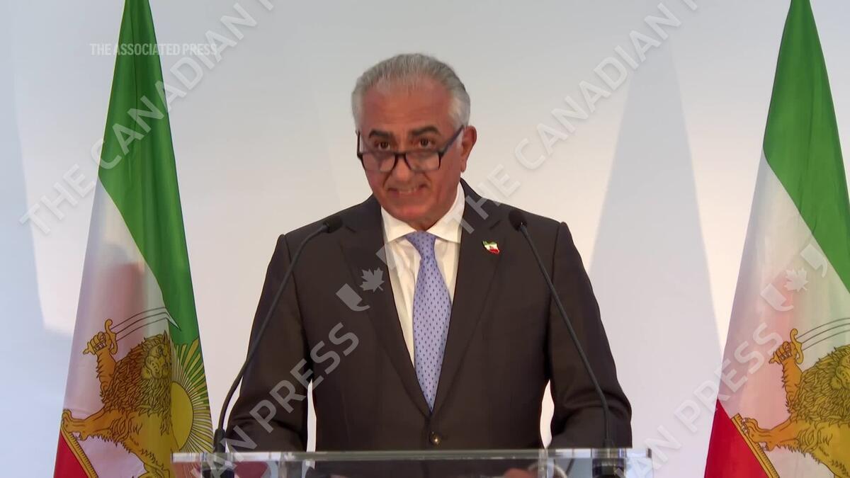 The son of Iran's last shah said Monday he's ready to take over the Iranian leadership and lead the country's transition to democracy. (AP video shot by Alex Turnbull; Production: Catherine Gaschka)