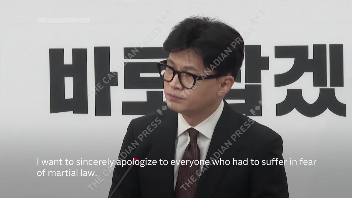 Han Dong-hoon announced his resignation during a press conference at parliament and began by saying he wants to apologize to South Korean people who suffered in fear of martial law declaration.