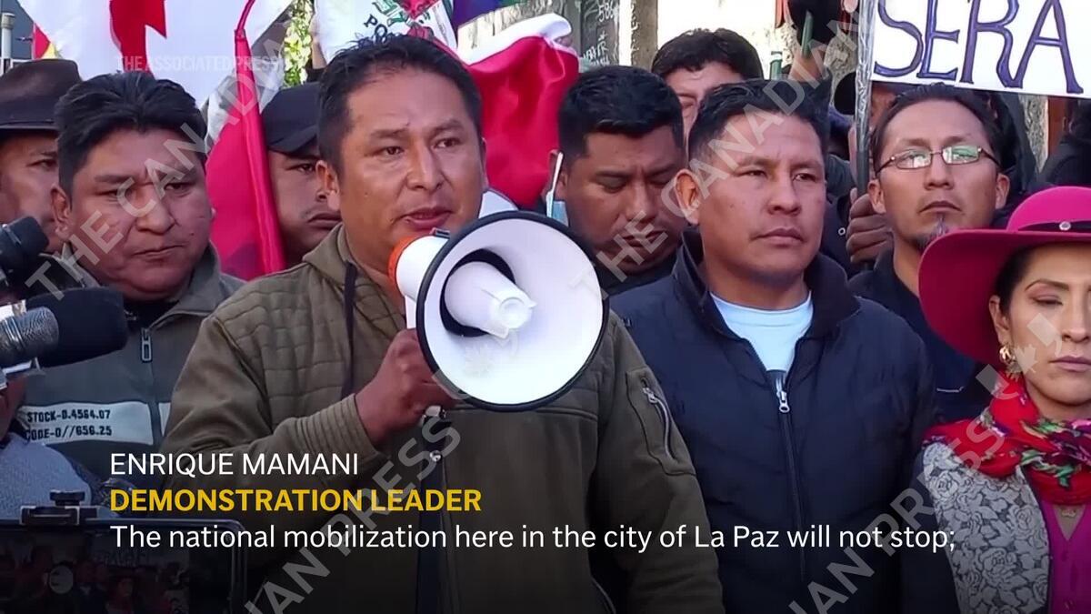 Supporters of former Bolivian President Evo Morales clashed with police in La Paz as they threaten to extend their protest outside the capital. (AP Video by Carlos Guerrero)