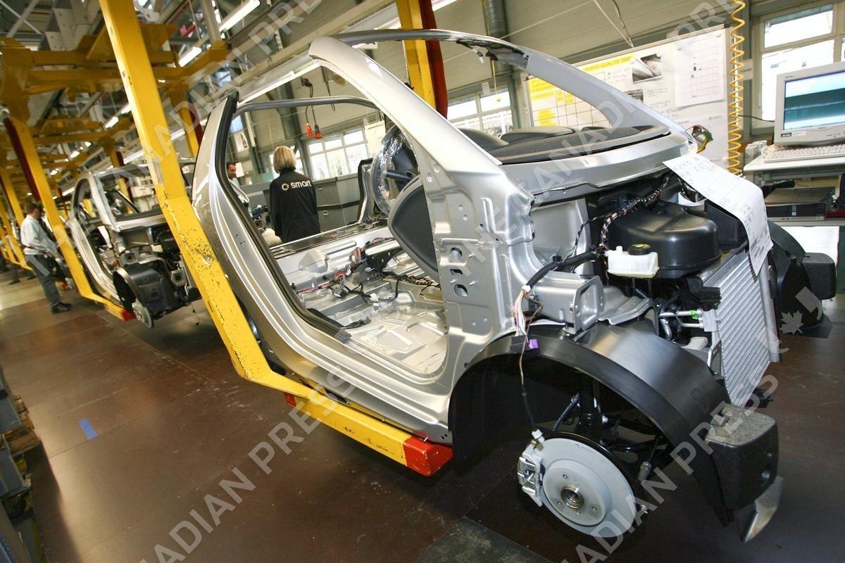 A view inside of Smart factory complex in Hambach, Moselle, France, on February 24, 2009. Smartville established in 1994 as a joint-venture of Daimler-Benz and the Swiss watch manufacturer Swatch to produce the Smart car. Today it is fully-owned by Daimler AG. The 'Smart' production site in Hambach (France) with its 2 000 workers is among the most modern automobile production plants. It has been built for 450 million Euros and has started production in 1998. Photo by Mathieu Cugnot/Asa Pictures/ABACAPRESS.COM