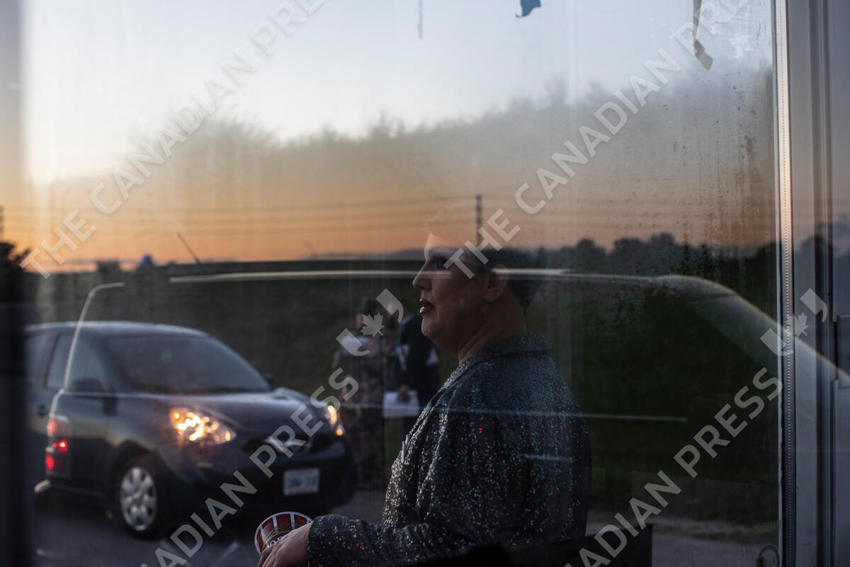 Drag Queen Miss Conception watches ticket holders arrive at Drive In Drag Show Canada, in Oakville, Ont., on Thursday, September 17, 2020. THE CANADIAN PRESS/Chris Young