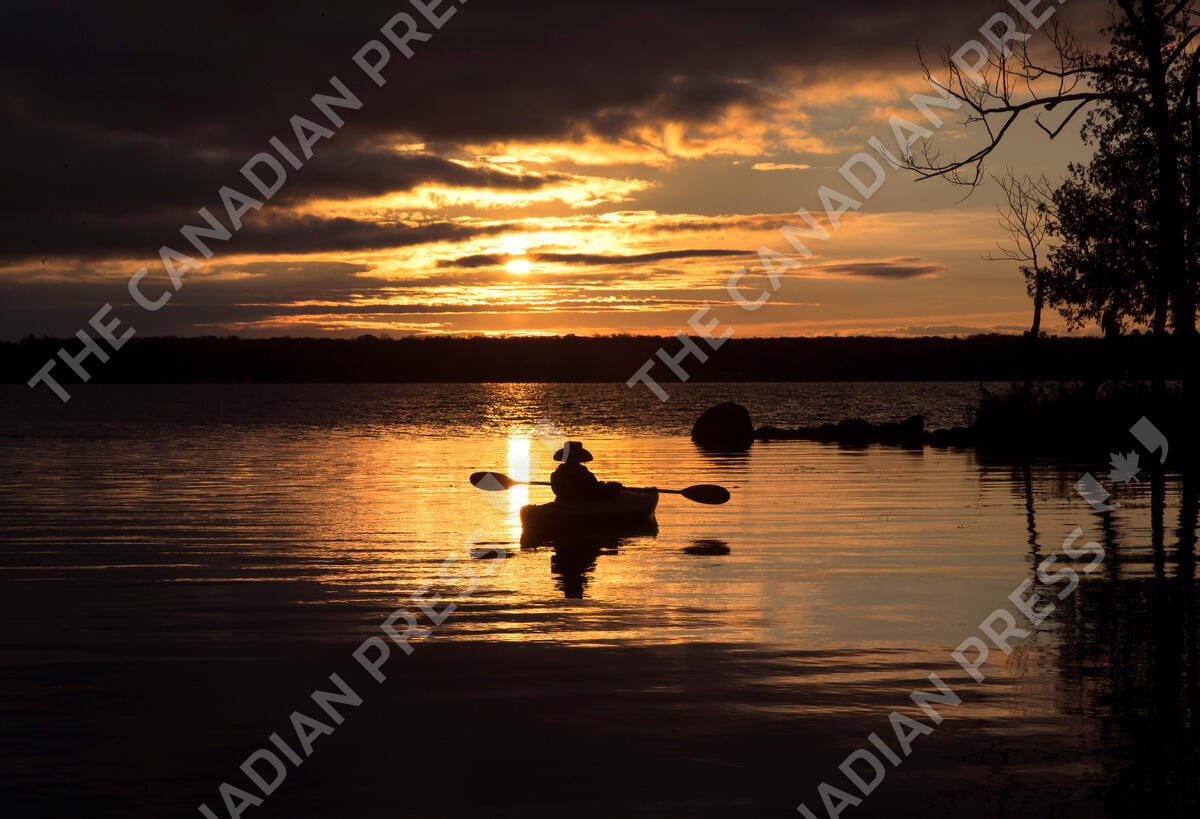 Kayaker paddles on Pigeon Lake in the city of Kawartha Lakes in central Ontario on Tuesday, November 2, 2021. THE CANADIAN PRESS/Fred Thornhill