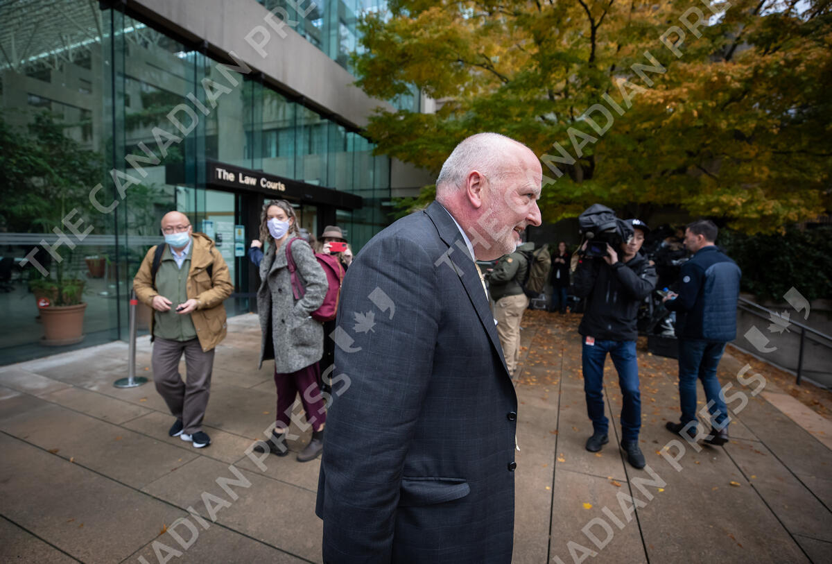 Lawyer Ken McEwan, who is representing former Rogers Communications chairman Edward Rogers, leaves B.C. Supreme Court in Vancouver, on Friday, November 5, 2021. THE CANADIAN PRESS/Darryl Dyck