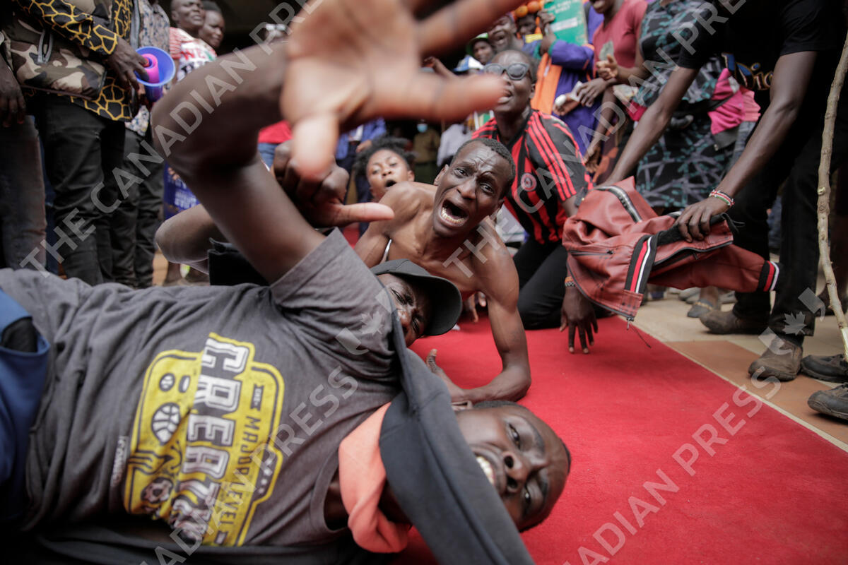Supporters of presidential candidate Raila Odinga react as he arrives at his campaign headquarters after submitting a petition at the Supreme Court in Nairobi, Kenya Monday, Aug. 22, 2022. Odinga filed a Supreme Court challenge to last week's election result, asserting that the process was marked by criminal subversion and seeking that the outcome be nullified and a new vote be ordered. (AP Photo/Brian Inganga)