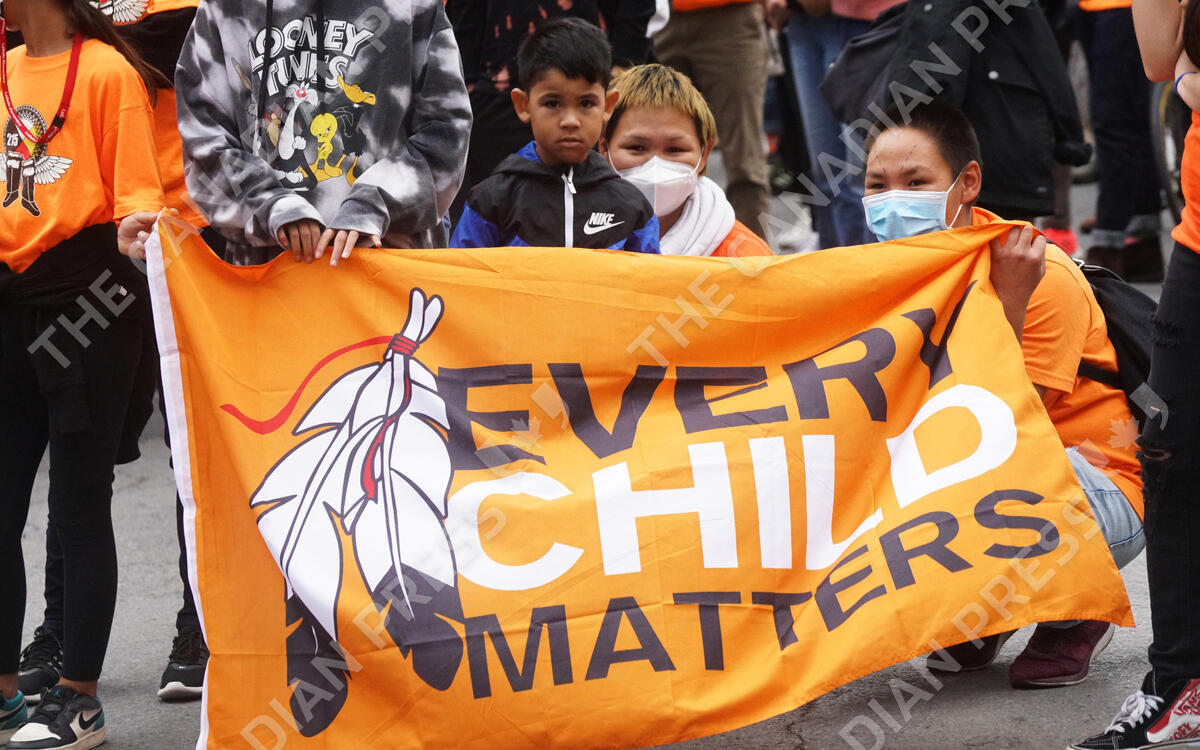 Children getting ready to march in the first ever Reconciliation Day march in Montreal, Quebec, September 30, 2021. THE CANADIAN PRESS IMAGES/Mario Beauregard