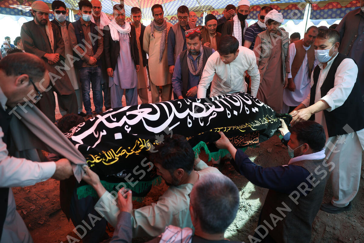 Afghan Hazaras attend the funeral of Mina Khiari, who was killed in bombing last week, in Kabul, Afghanistan, Saturday, June 5, 2021. After the collapse of the Taliban 20 years ago, Afghanistan's ethnic Hazaras began to flourish and soon advanced in various fields, including education and sports, and moved up the ladder of success. They now fear those gains will be lost to chaos and war after the final withdrawal of American and NATO troops from Afghanistan this summer. (AP Photo/Rahmat Gul)