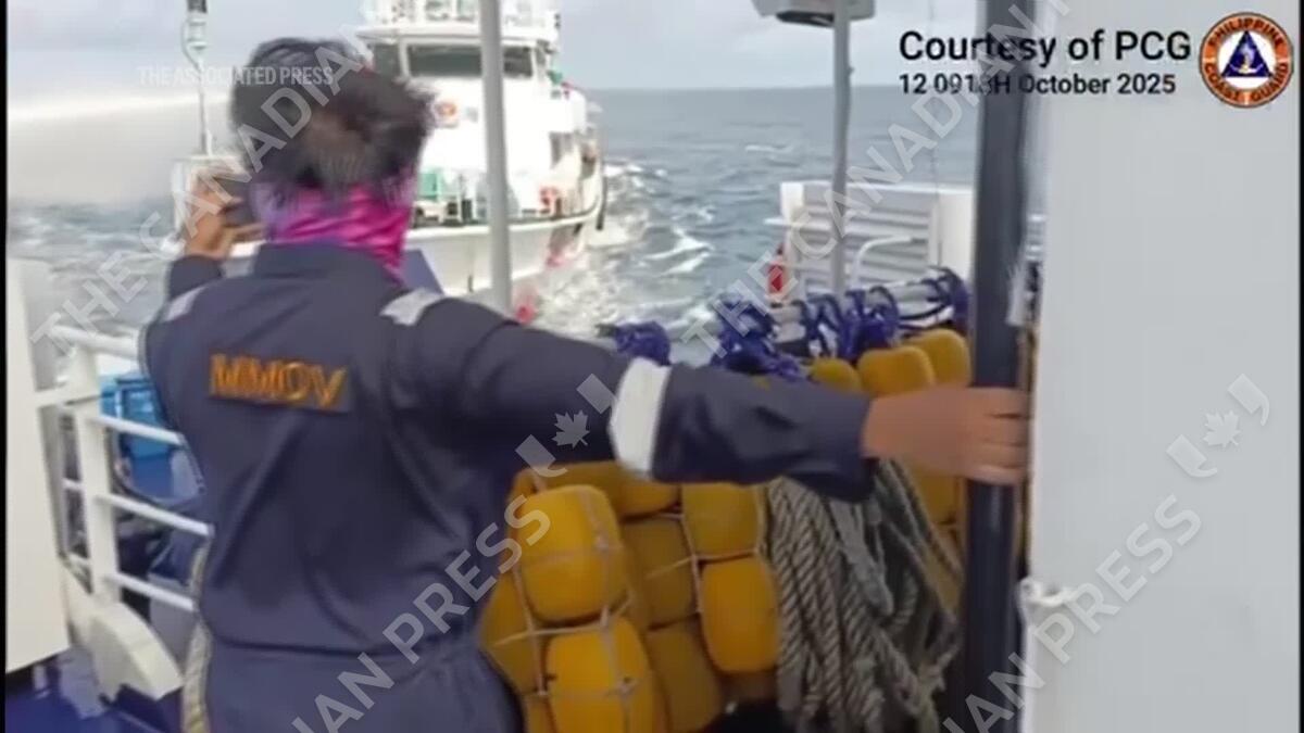 CP174577965 | Video shows China Coast Guard spraying water cannon on Philippine research vessel