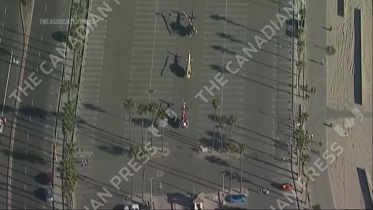 Aerial footage shows damage from at a Southern California beach following a helicopter crash