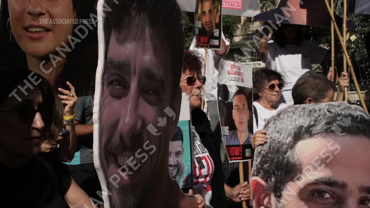 CP170082411 | Families of Israeli hostages held in Gaza protest outside Israel's military headquarters