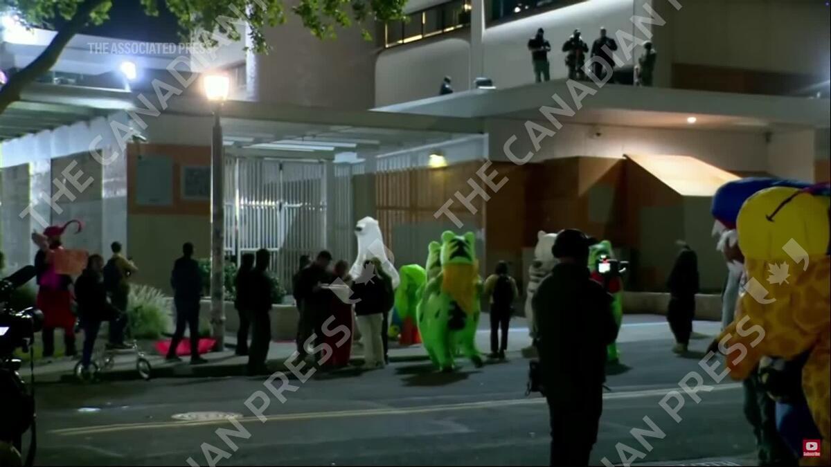 People in colorful costumes were among the demonstrators outside of Portland, Oregon's U.S. Immigration and Customs Enforcement building on Thursday night. President Donald Trump and his administration describe Portland as a city under siege by antifa, labeling it a war zone.