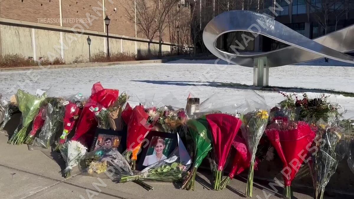 A makeshift shrine of flowers and condolence cards has gone up outside of the Brown University building where a gunman killed two students and wounded nine others, with the Ivy League school and surrounding community trying to make sense of the tragedy. (AP Video by Amanda Swinhart, Leah Willingham and Matt O'Brien)
