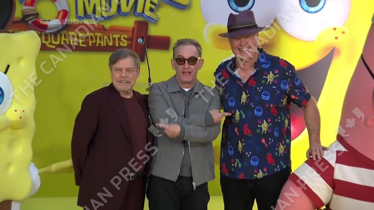SpongeBob SquarePants placed his hand and footprints in cement outside the TCL Chinese Theatre. At the ceremony voice actors Tom Kenny and Mark Hamill - who lend their talents to new movie “The SpongeBob Movie: Search for SquarePants" - discussed the character's enduring appeal. (Dec. 17)