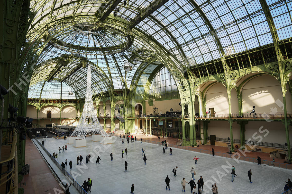People skate on an ice rink at the Grand Palais, in Paris, Tuesday Dec. 16, 2025. (AP Photo/Thibault Camus)