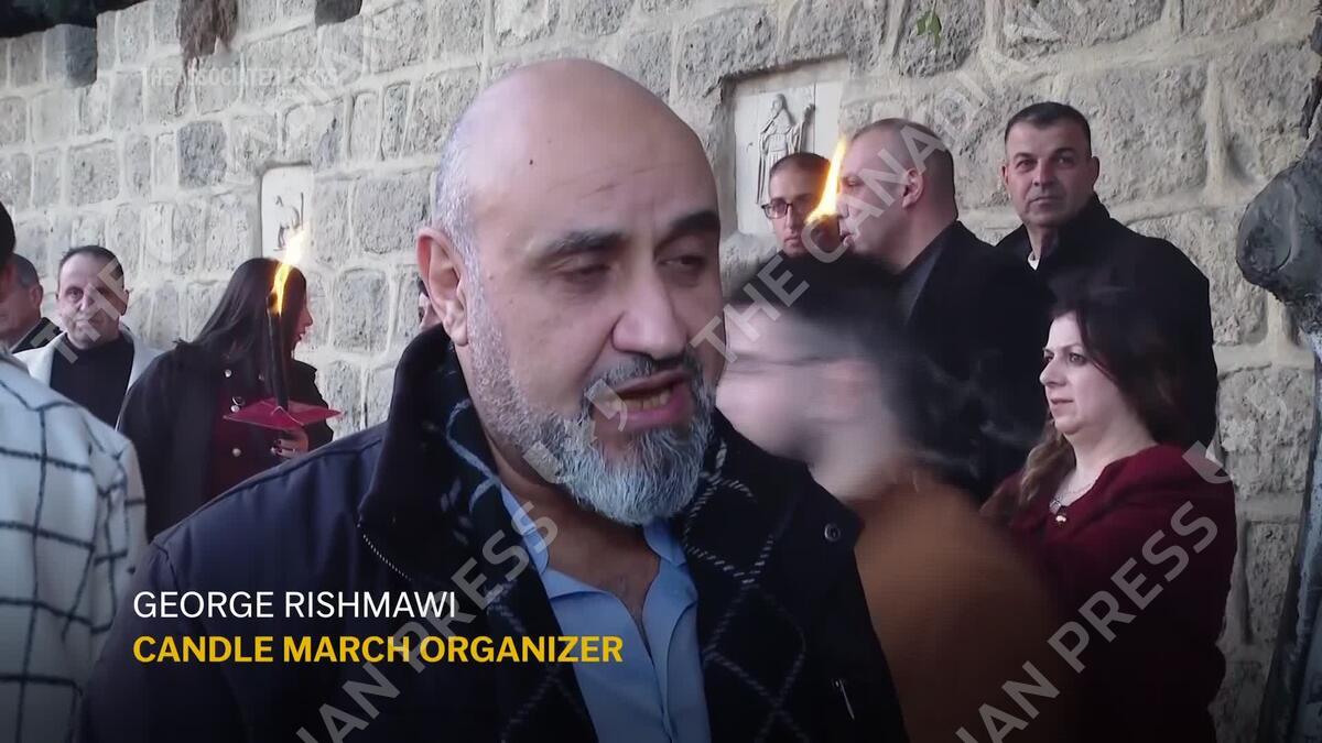 Participants marched through the West Bank holding candles as a symbol of hope and solidarity under the theme of: “Light a Candle to Stop the Genocide.” (AP video shot by Imad Isseid)