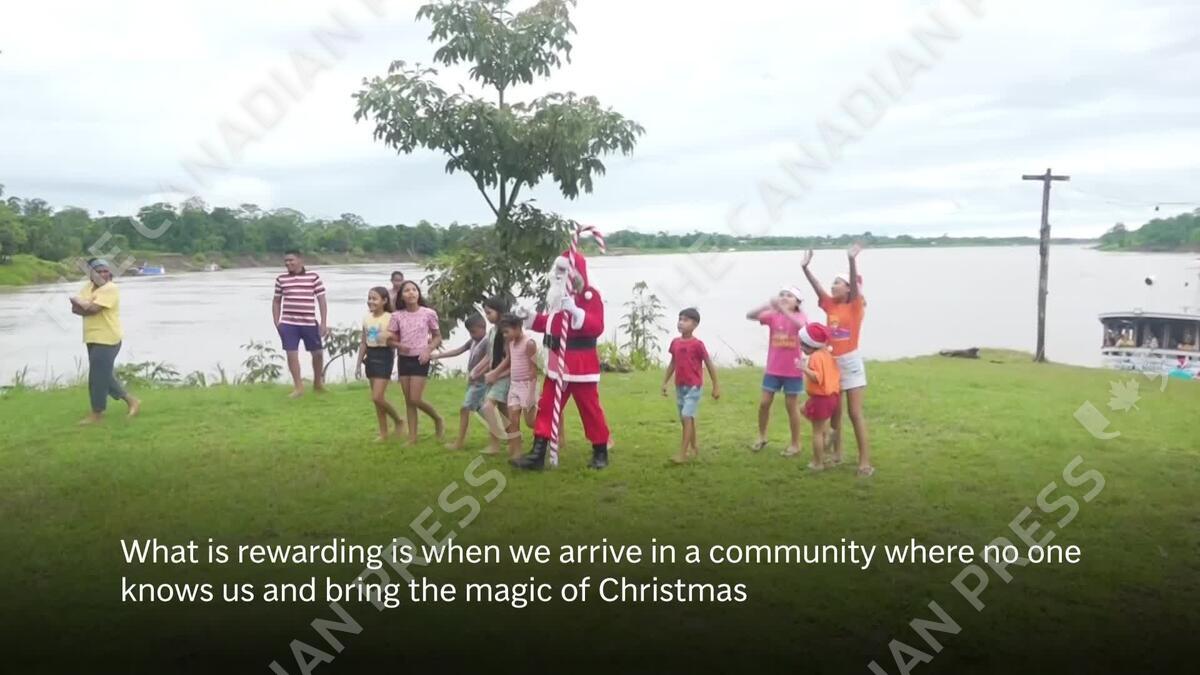 Santa Claus navigates through Brazil's Amazon delivering gifts and Christmas joy