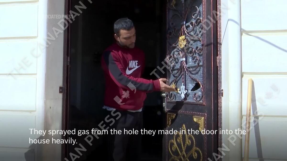 Apparent Israeli settlers attacked a Palestinian home in the south of the Israeli-occupied West Bank overnight, breaking in and killing sheep, a Palestinian official said Tuesday. (AP video shot by: Ameer Abdeen)