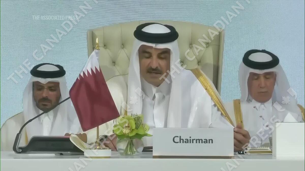 Qatar’s emir opens summit and criticizes Israel for its "treacherous, blatant and cowardly aggression"