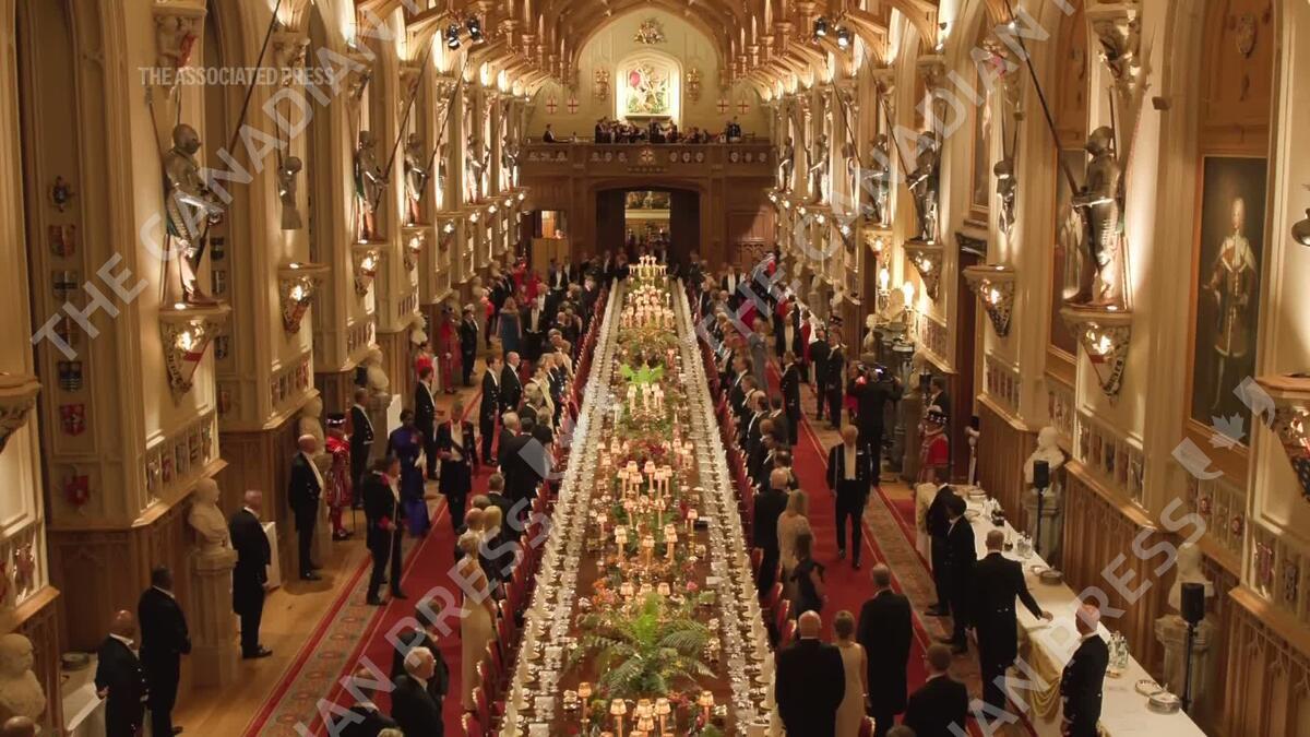 King Charles III and U.S. President Donald Trump walked side by side to enter St. George’s Hall, where a state banquet is being held at Windsor Castle in the American president's honor.