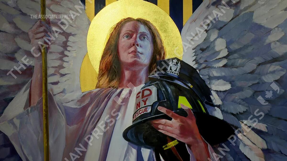 New York's St. Patrick's Cathedral unveils a new mural, its largest permanent artwork, that honors the city's immigrants. (AP Video: Ted Shaffrey)