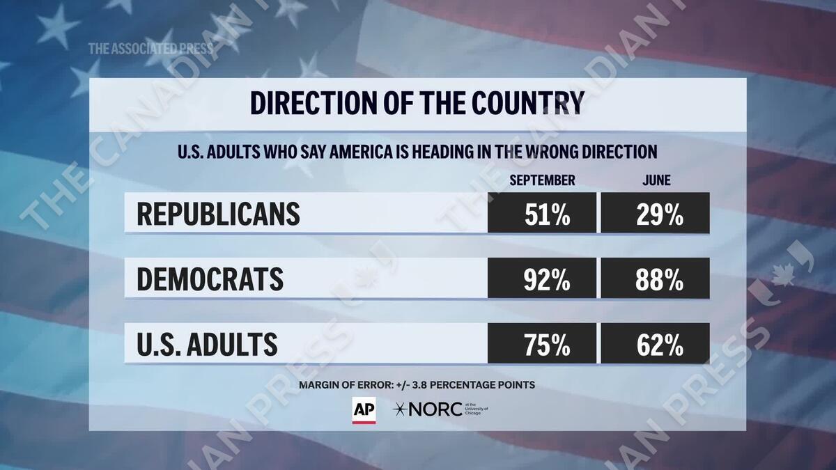 Republicans’ outlook on the direction of the country has soured dramatically, according to a new AP-NORC poll that was conducted shortly after the assassination last week of conservative activist Charlie Kirk. (AP Video by Nathan Ellgren)