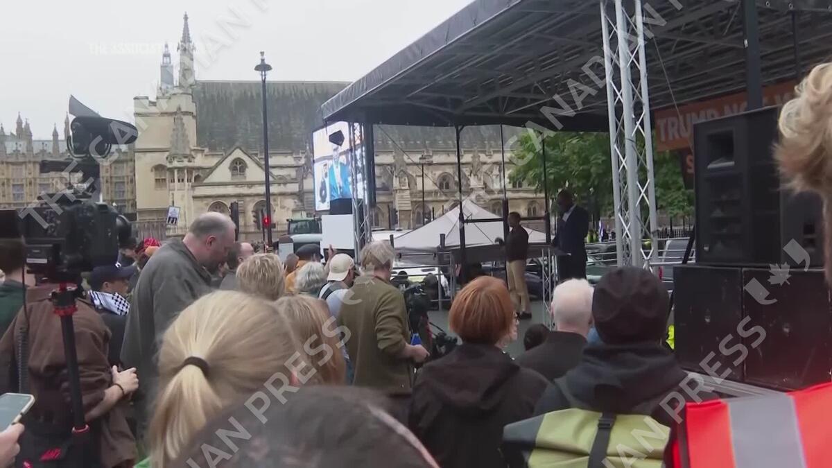 Demonstrators gathered in London's Parliament Square Wednesday, protesting U.S. President Donald Trump's state visit to the U.K.