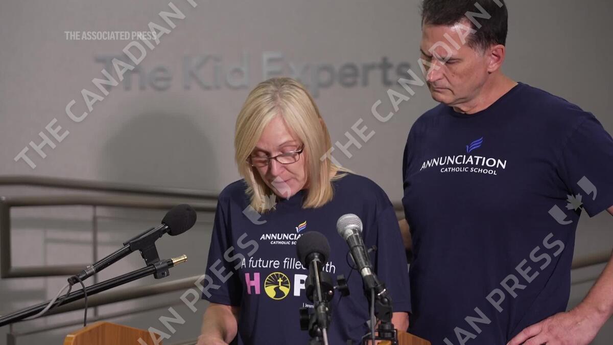 Parents of Annunciation shooting victims plead for action on guns as Vice President JD Vance visited families in Minneapolis. (AP Video: Mark Vancleave)