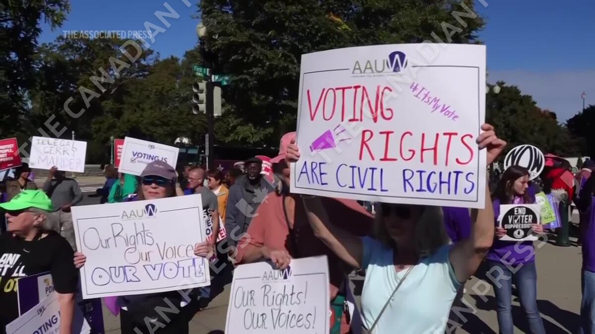 The Supreme Court appears inclined to limit the use of the Voting Rights Act to force states to draw electoral districts favorable to minority voters. At a rally, people held signs reading, "Voting rights are civil rights." (AP video by Mike Pesoli)