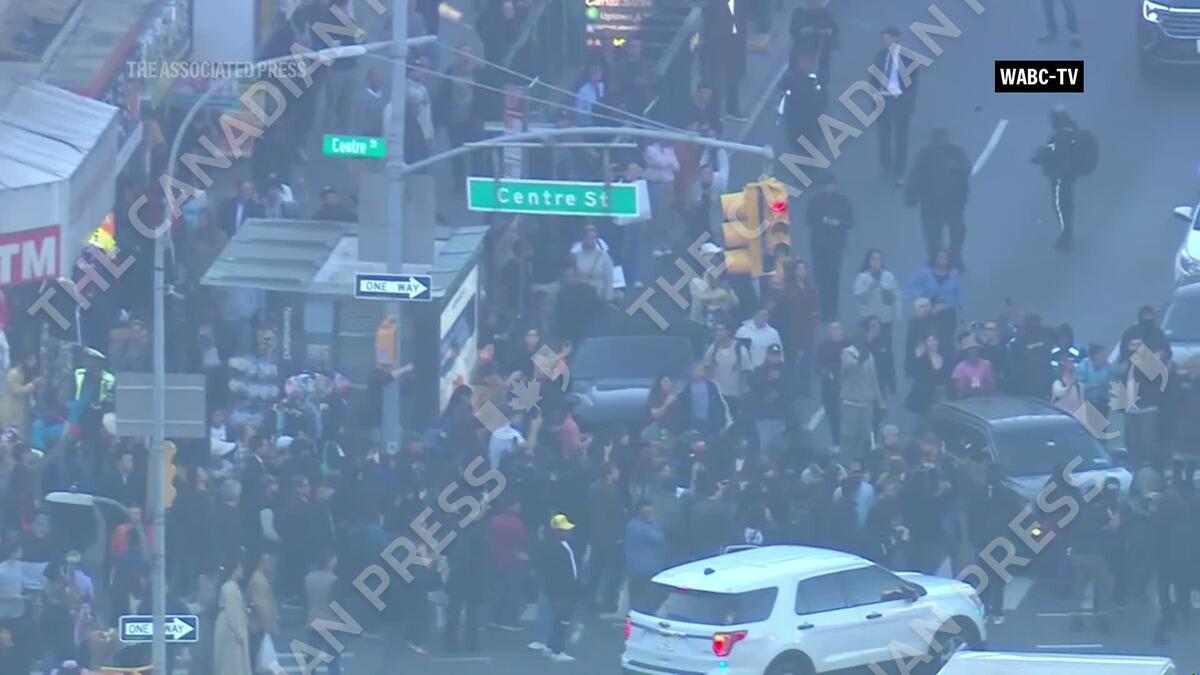 Pedestrians were seen moving away as the vehicle made it's way out of the crowd in Manhattan.