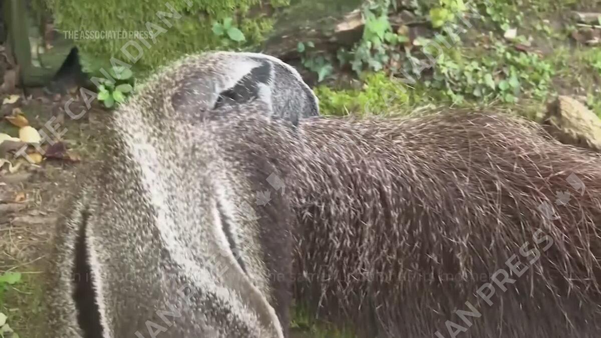 Cologne Zoo on Thursday unveiled a giant anteater cub as its latest arrival. The cub was born on August 28 and its sex has not yet been determined so as not to disturb the mother-child bond, according to the zoo. (AP video shot by Daniel Niemann)